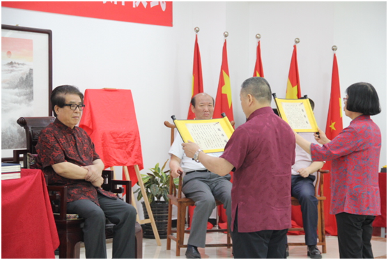鐘偉主任和郭玉琴主任拜向張大寧先生行傳統(tǒng)拜師禮