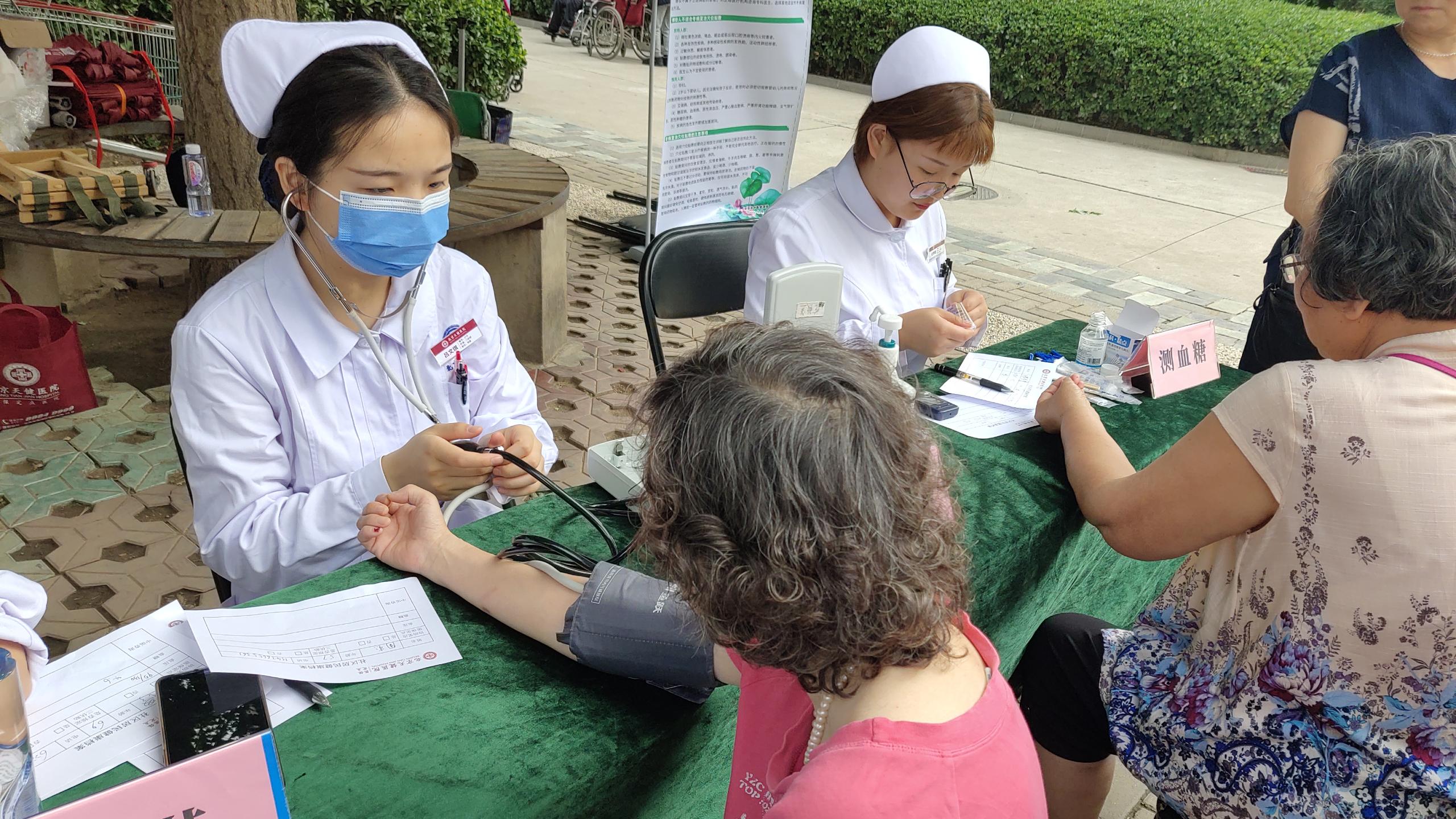 本次義診活動包括有免費測量血壓、血糖等環(huán)節(jié),活動吸引了許多小區(qū)居民前來參加。在活動過程中,醫(yī)護人員引導(dǎo)居民去檢查、詢問,而張大夫、李大夫?qū)用裉岢龅膯栴}耐心地進行解答并給予建議。一些居民在檢測完之后還相互關(guān)心、問候其他人的檢查情況,現(xiàn)場氣氛熱鬧而溫馨。